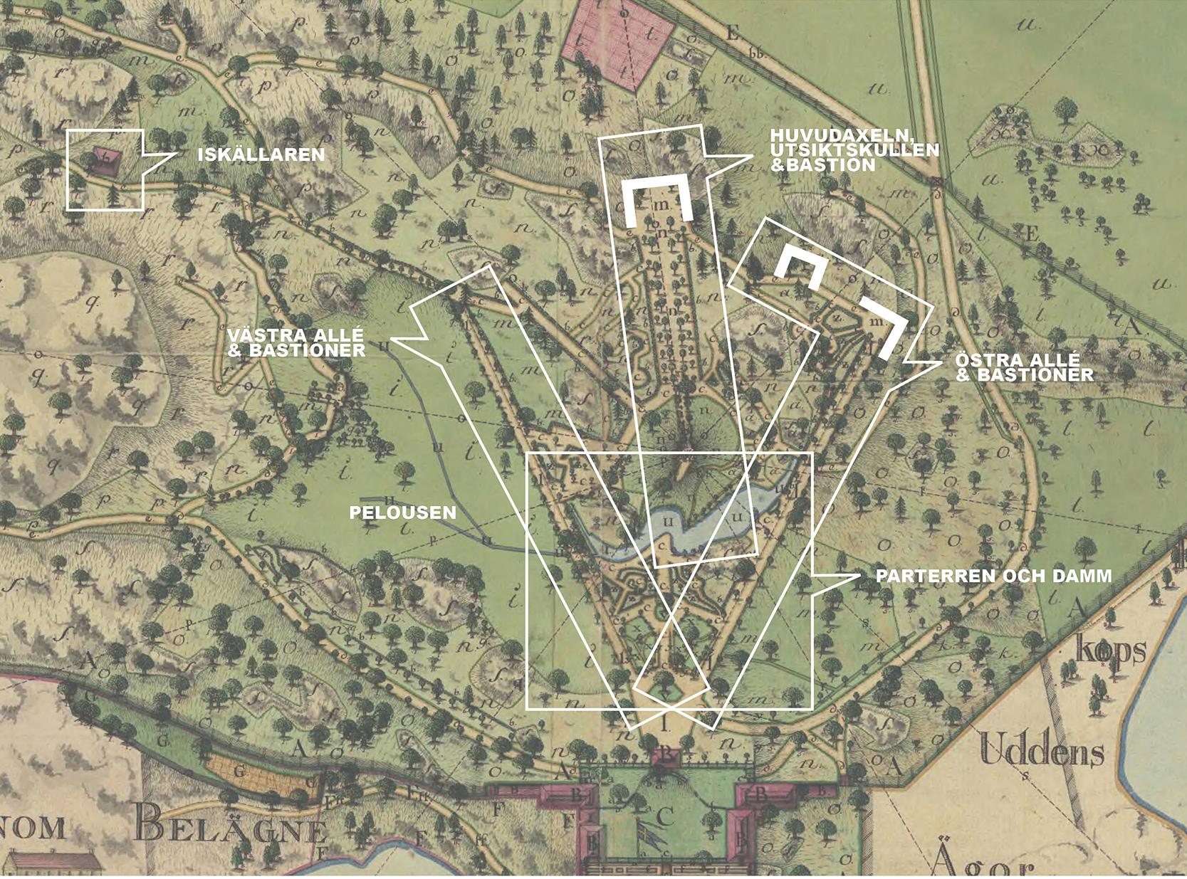 Kunskapsunderlaget bygger på en arkeologisk undersökning, arkeobotanisk utredning med pollenanalys, botanisk inventering och personhistorisk utredning. Dessa undersökningar har kombinerats med en samläsning av historiska kartor, laserscanning och georadarundersökning för att bygga kunskap om parken. Den historiska kartan från 1777, upprättad av Reinhold Kökeritz, framstår som en kombination av dokumentation av utförda arbeten och ej genomförda förslag på lösningar för dammens vattenförsörjning.