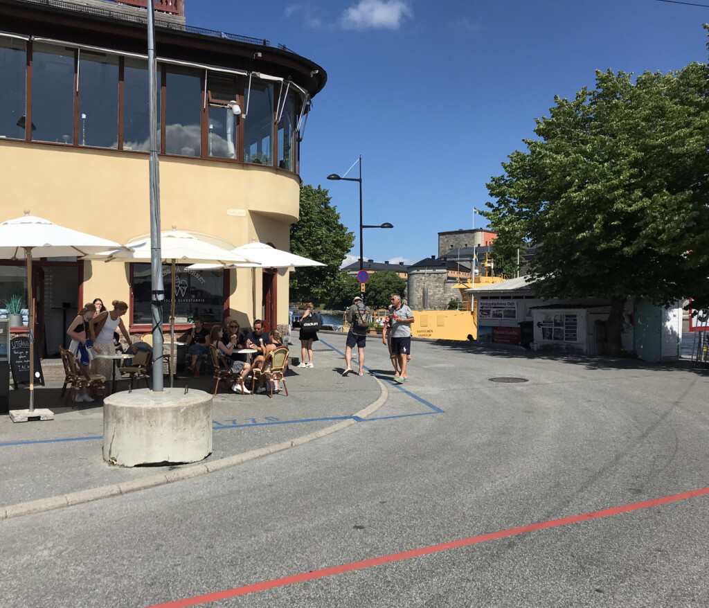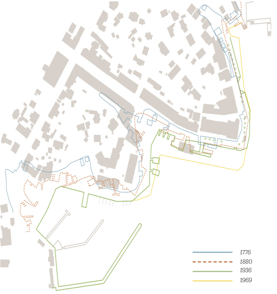 Linjerna målades på marken under 2021 för at visa historiska kajlinjen.
